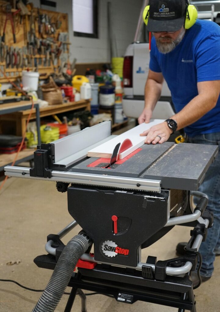 Jake Lewandowski from Great Lakes Builders, and a contributing editor to The Journal of Light Construction (JLC), has long been a fan and user of SawStop table saws. Jake’s construction company already has a SawStop Jobsite Saw (JSS) in its tool arsenal, and with a focus on keeping his crew members safe, Jake was anxious to try out the new Compact Table Saw (CTS).