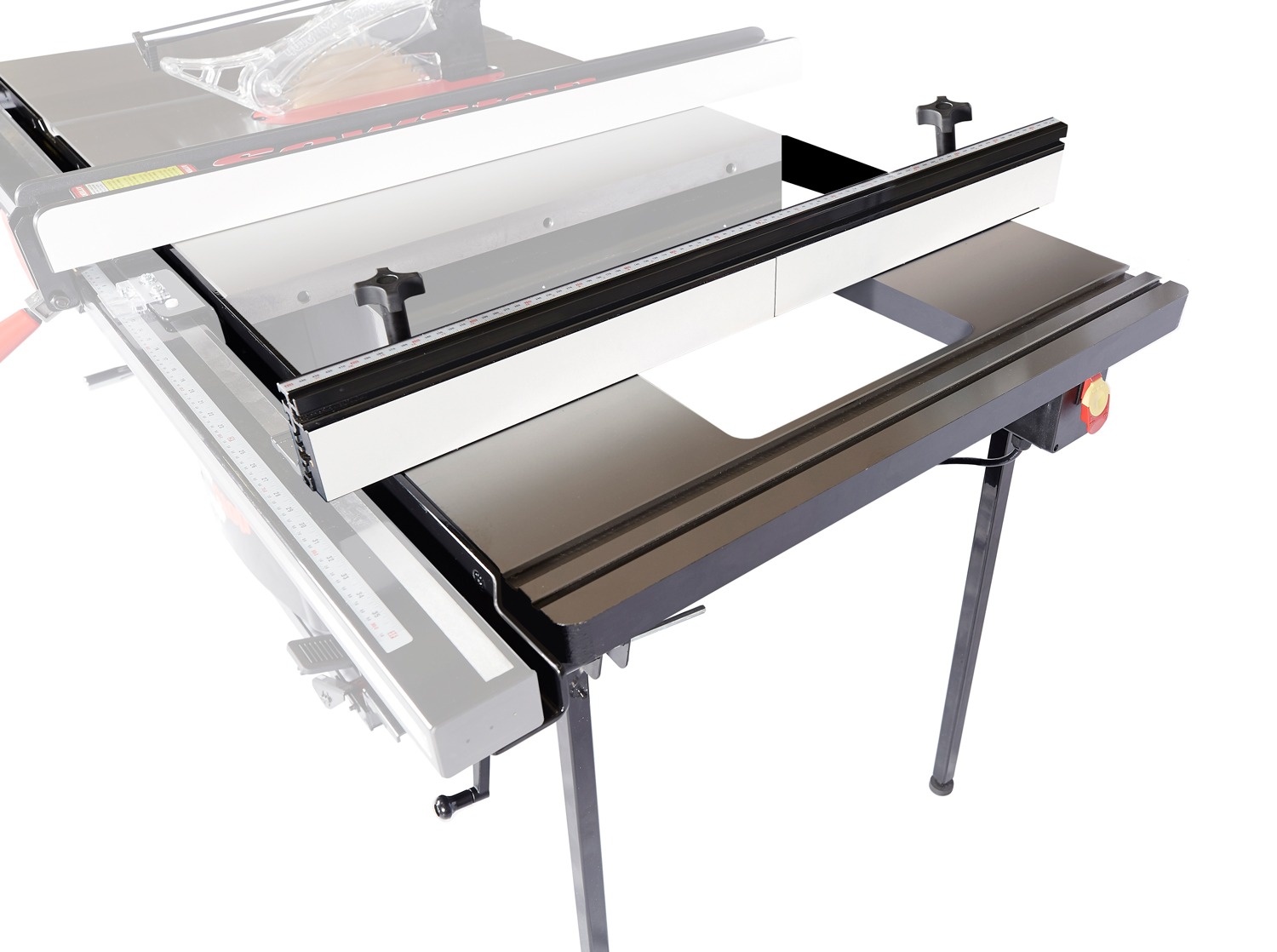 RT-TGIOptimize your SawStop saw with this In-Line Router Table Assembly. Replace your extension table with beautiful cast iron, or install to the left of the saw. Includes a 30″ x 16″ precision cast iron table with internal fence channels, an external power switch for your router, two support legs, and a 32″ Router Fence Assembly featuring two adjustable faces with shims, a 2.25″ dust port, adjustable scales and compatibility with various routing accessories like feather boards, flip stops and more.