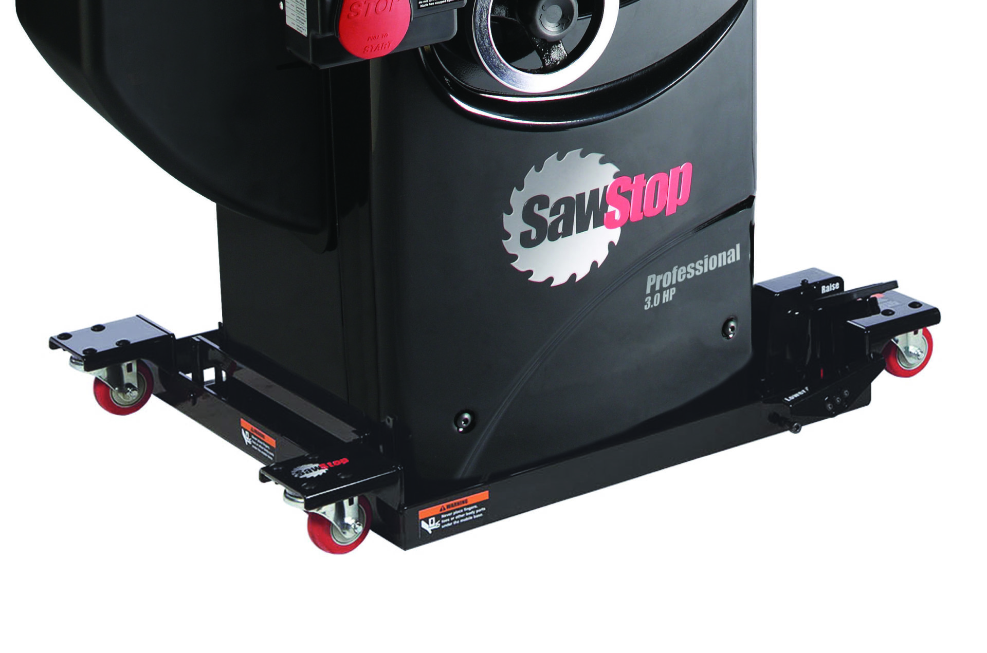 MB-PCS-INDThe easiest, smoothest-moving base available for the Professional Cabinet Saw. With four independent casters, you can quickly and easily move your saw into a corner and out of the way when not in use. No need to worry about wheel brakes: when disengaged the saw rests firmly on the ground, setting the saw’s weight directly on the floor, not the wheels. Maximize compatibility with SawStop Options, from In-Line Router Tables to the Sliding Crosscut Table and more. The 1,000 lb capacity supports the saw and extention table, no additional extention hardware needed. No flimsy wheel brakes to deal with and non-marring polyurethane wheels to keep your floors in tact. Assembly includes kit to adapt Industrial Mobile Base for use with Professional Cabinet Saw.