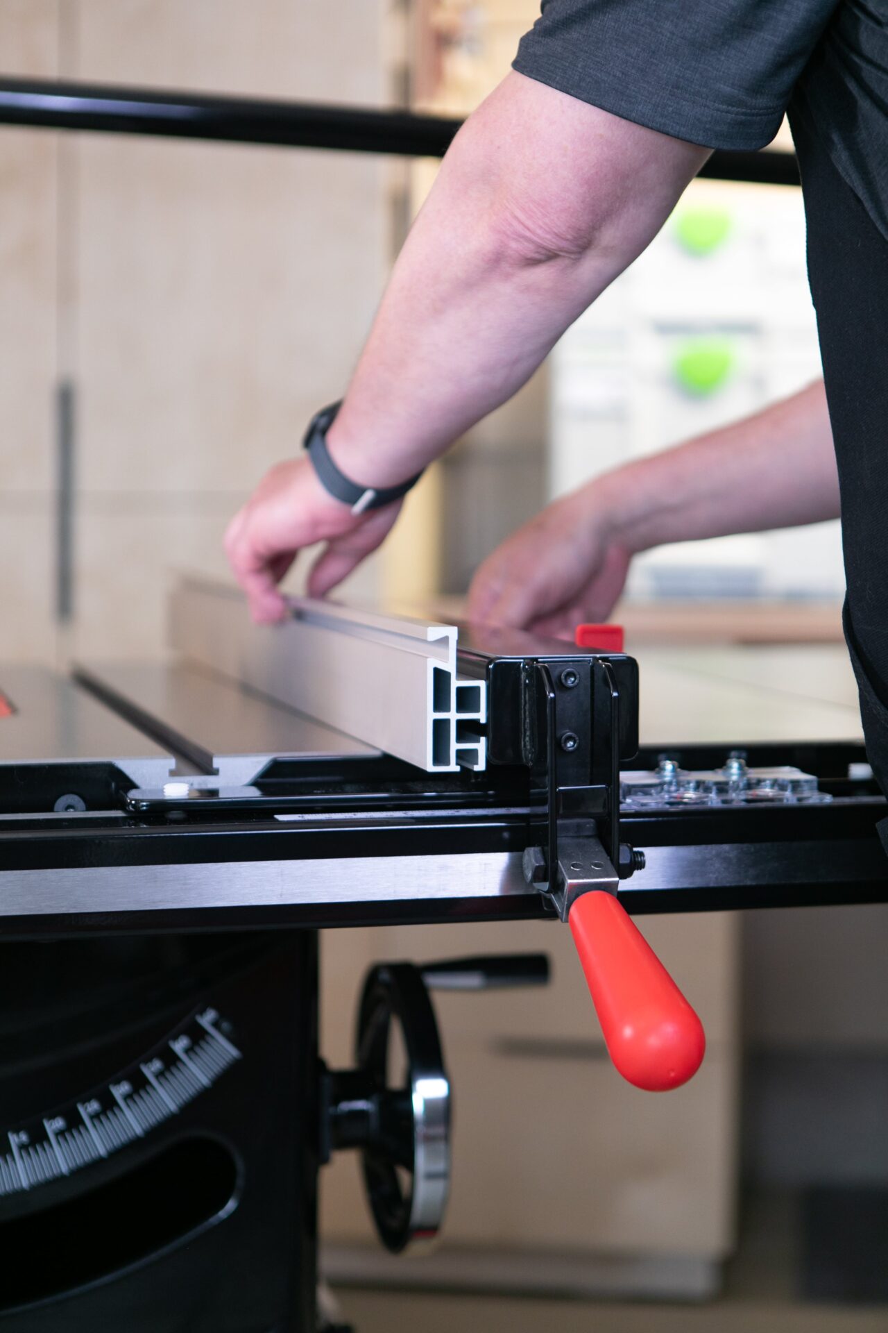 - Fits onto existing SawStop T-Glide fence rails with no conversion or modification needed. Locks parallel to the blade, once aligned.