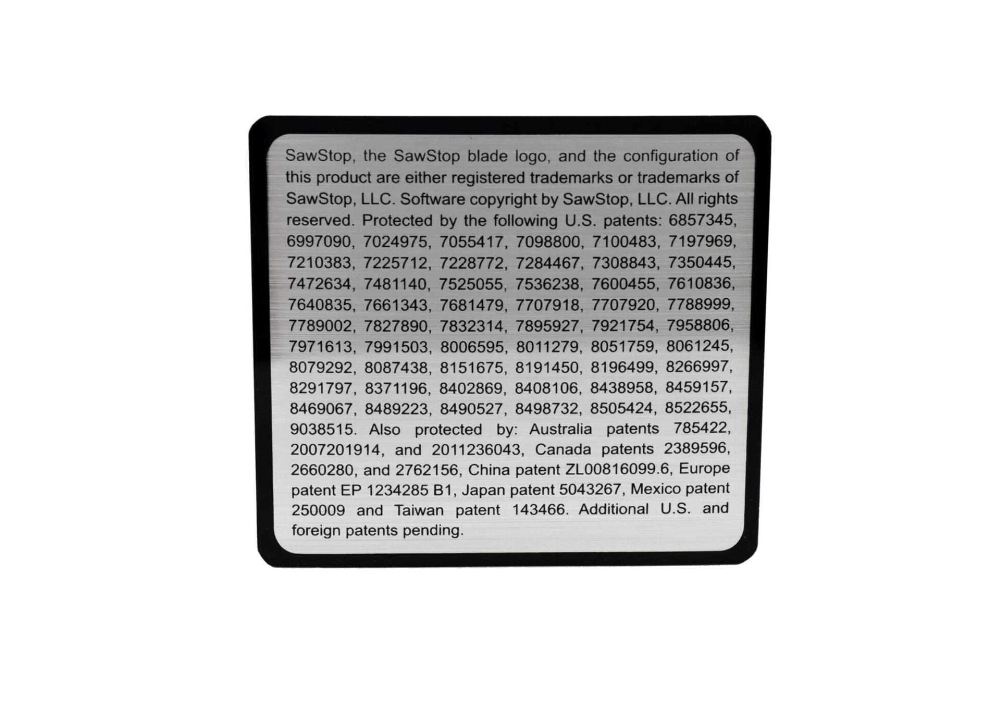 Patent Label for CNS Saws